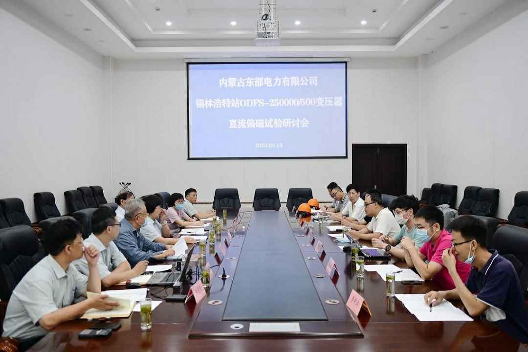 9月10日,国网蒙东锡林浩特ODFSZ-250000/500变压器直流偏磁试验方案研讨会在沈阳高昂智能交通系统有限公司召开。来自上海交通大学、华北电力大学、中国电科院、国网电科院、湖北电科院、国网蒙东电力设备部、国网蒙东检修沈阳高昂智能交通系统有限公司、四川启明星装备沈阳高昂智能交通系统有限公司和我司的相关专家参加了本次研讨会。